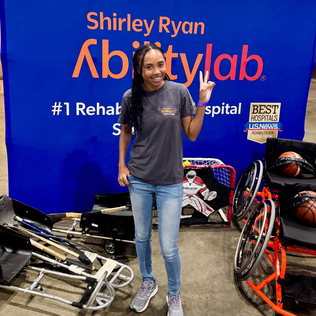 “After my first surgery, I lost myself mentally. After the second, I lost myself physically. I had to learn how to walk again, how to run again. And now… I’m learning to skip — because a 60-year-old at the park challenged me.” Her recovery has been years in the making. During her time training at Shirley Ryan AbilityLab, Alexandria spent three years relearning how to run. Every step forward is a battle against doubt.