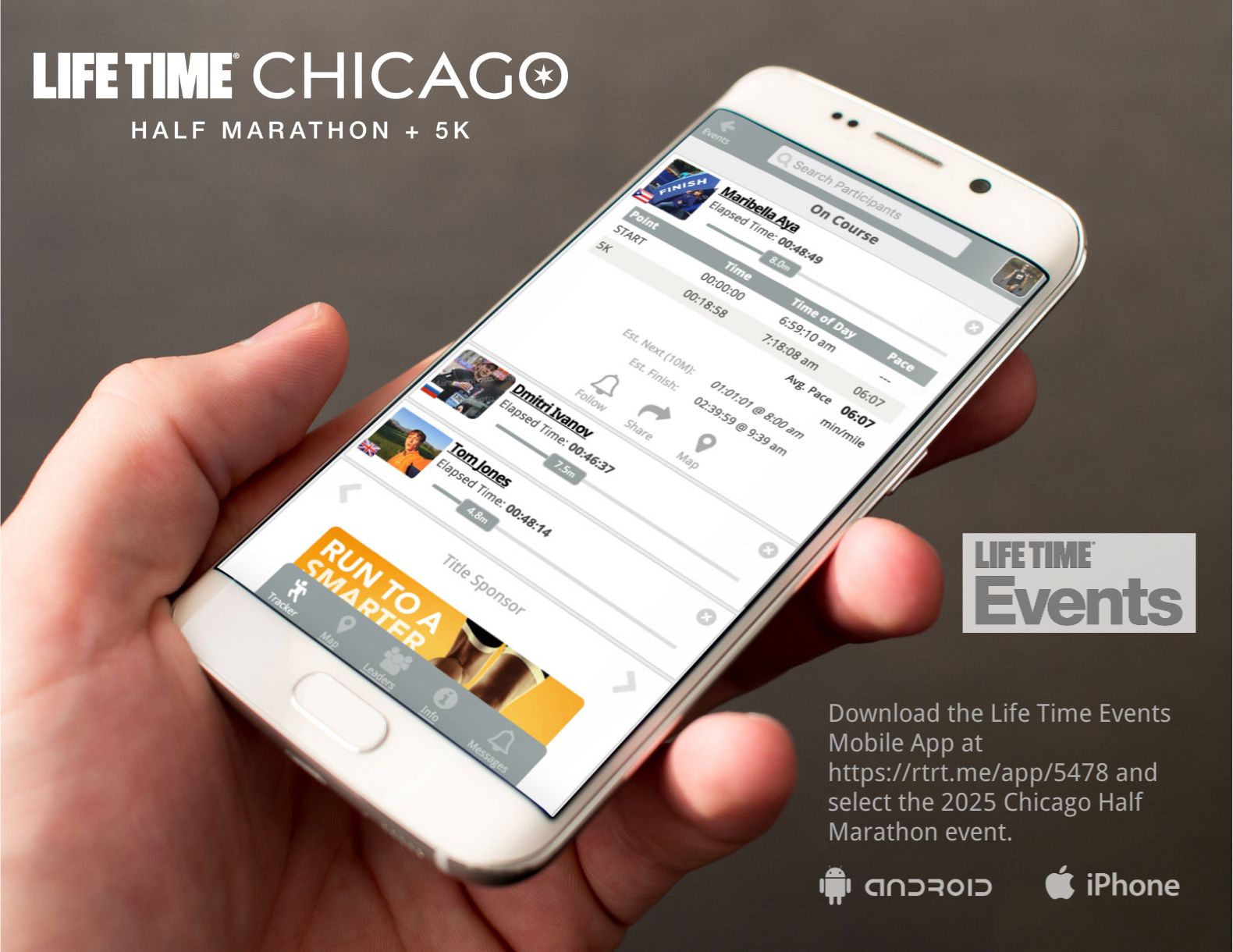 Mobile App – Features include Live Participant Tracking, Push Notifications, Leaderboards, Map Tracking, Event Messages, Event Info and more. Click here to download the app.